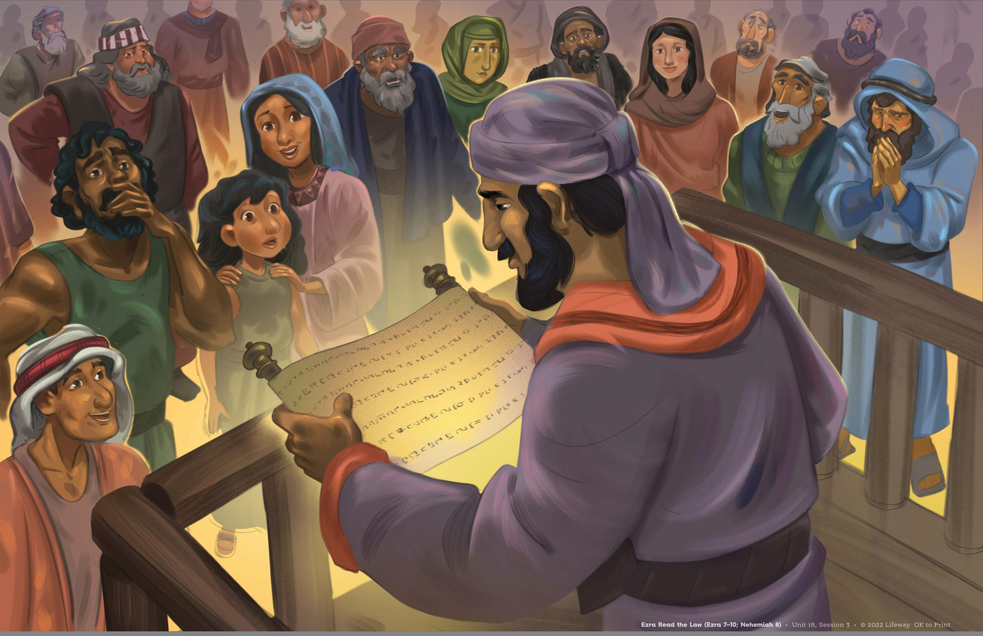 Christ Connection: God’s Word is powerful. When Ezra read God’s Word, the people loved God more and changed their ways. The Bible says that Jesus is “the Word.” Jesus is God who came to live with people on earth. Jesus has the power to change our hearts.